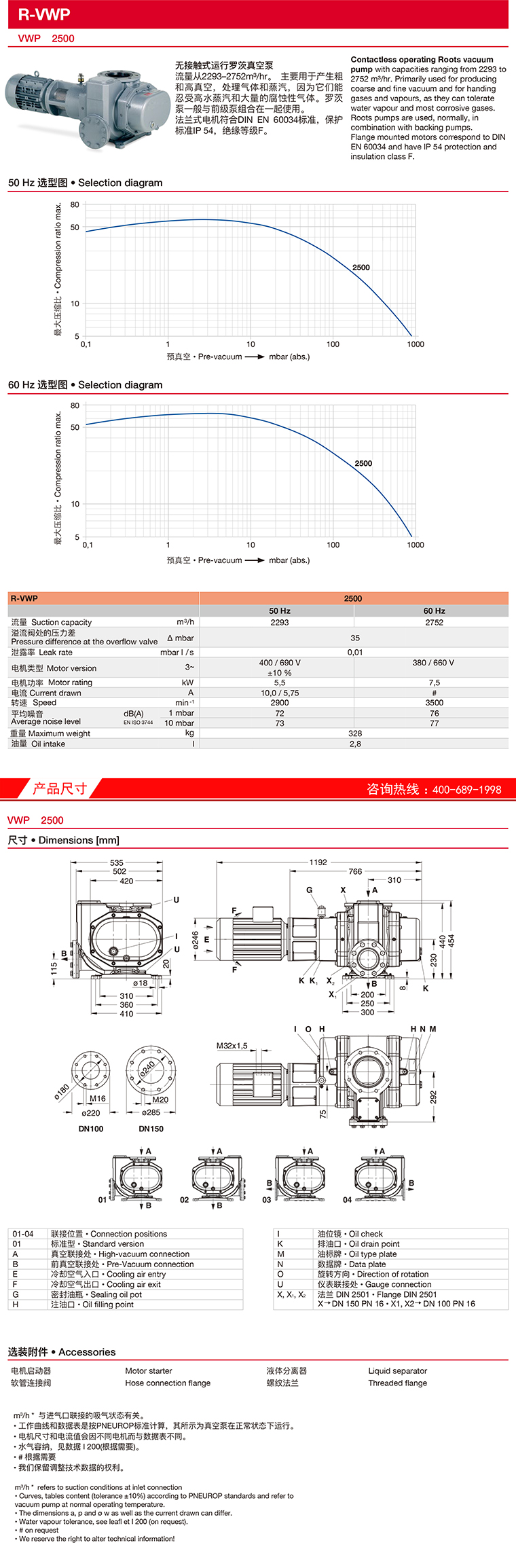 英格索兰罗茨真空泵 抽速:2293–2752m³/hr 功率:5-7KW 服务热线:400-689-1998