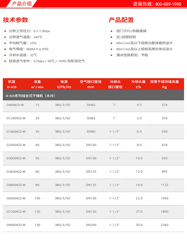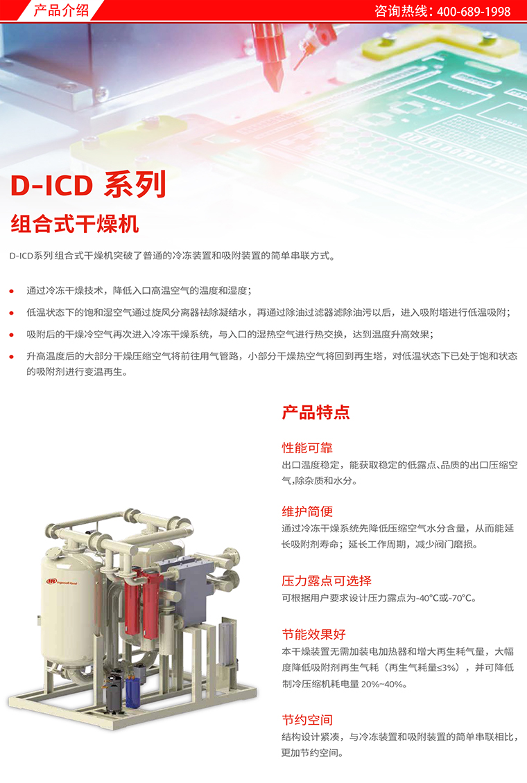 英格索兰D-ICD 系列组合式干燥机 流量:15-150m³/min 工作压力:0.7-1.0Mpa,服务热线:400-689-1998